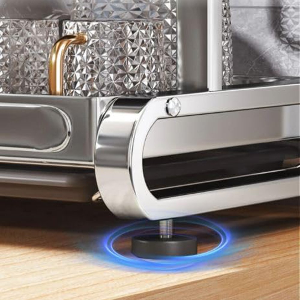 This dish drying rack has a sturdy structure and can bear the weight of dishes without shaking. Non-slip pads on the bottom prevent the shelf from sliding on the countertop.