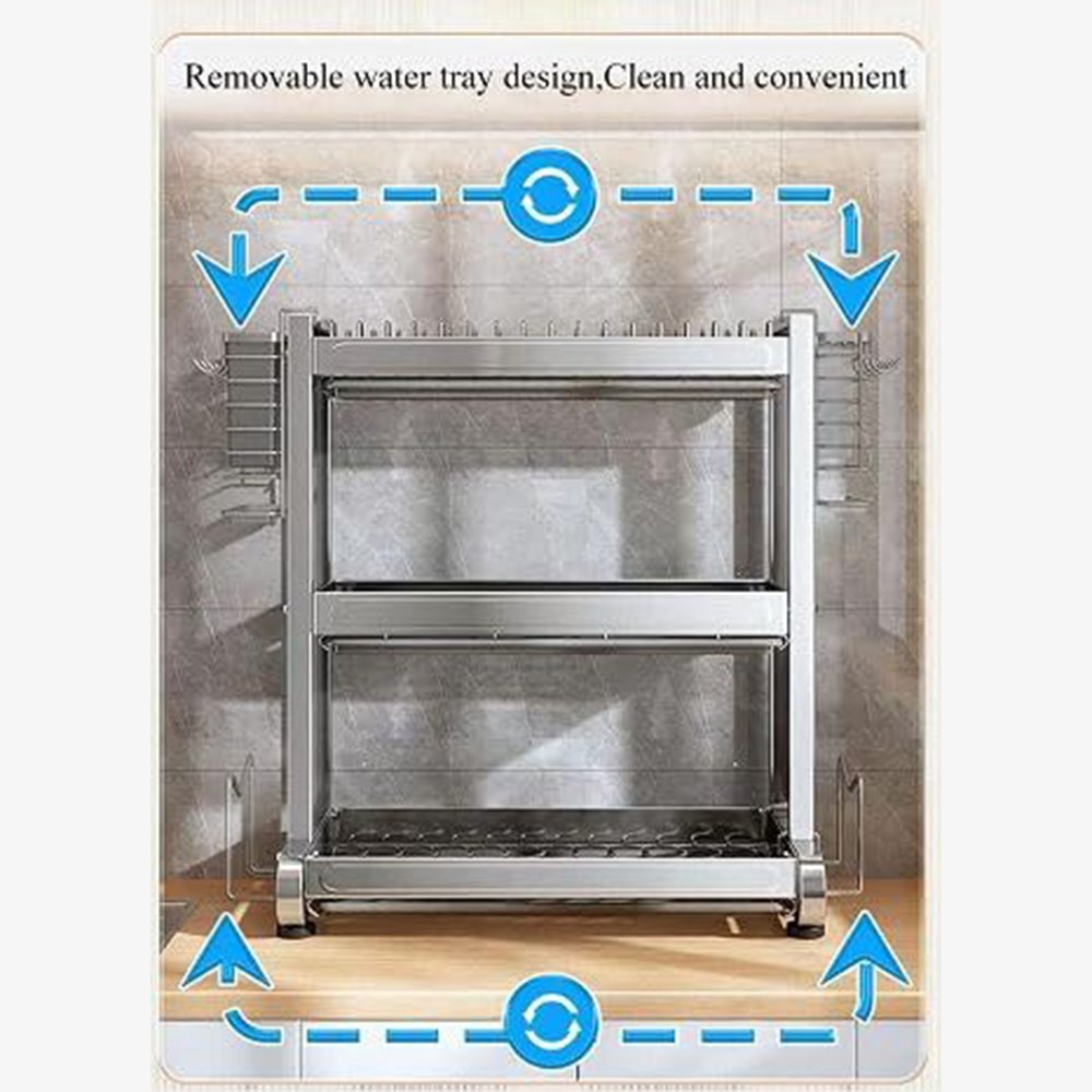 -This tableware drying rack utilizes three-dimensional space to save countertop space and keep your tableware clean and tidy. It features a removable drain plate .