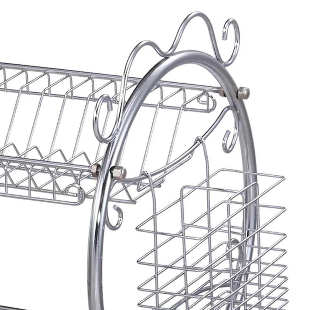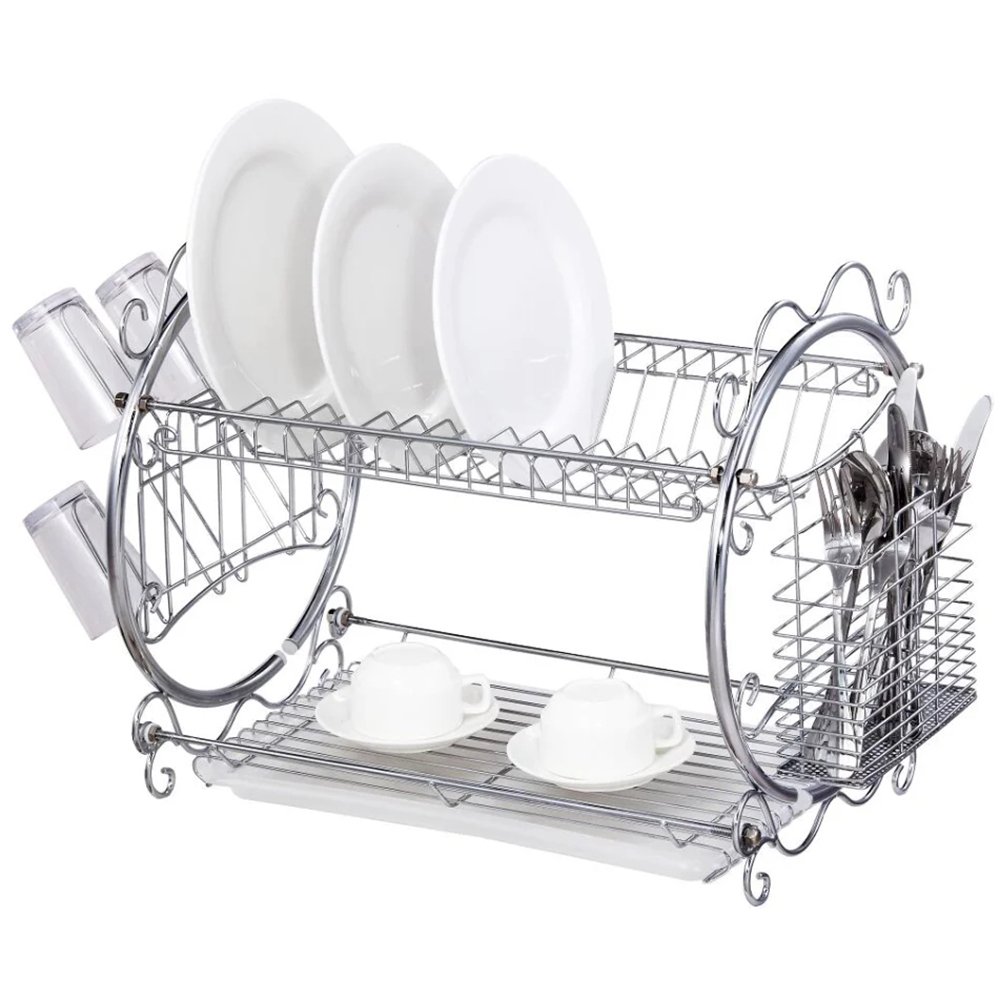 This dish rack is a versatile 2-tier multi-function dish drying rack that includes a cup drainer and strainer, providing efficient and organized drying space for your dishes.