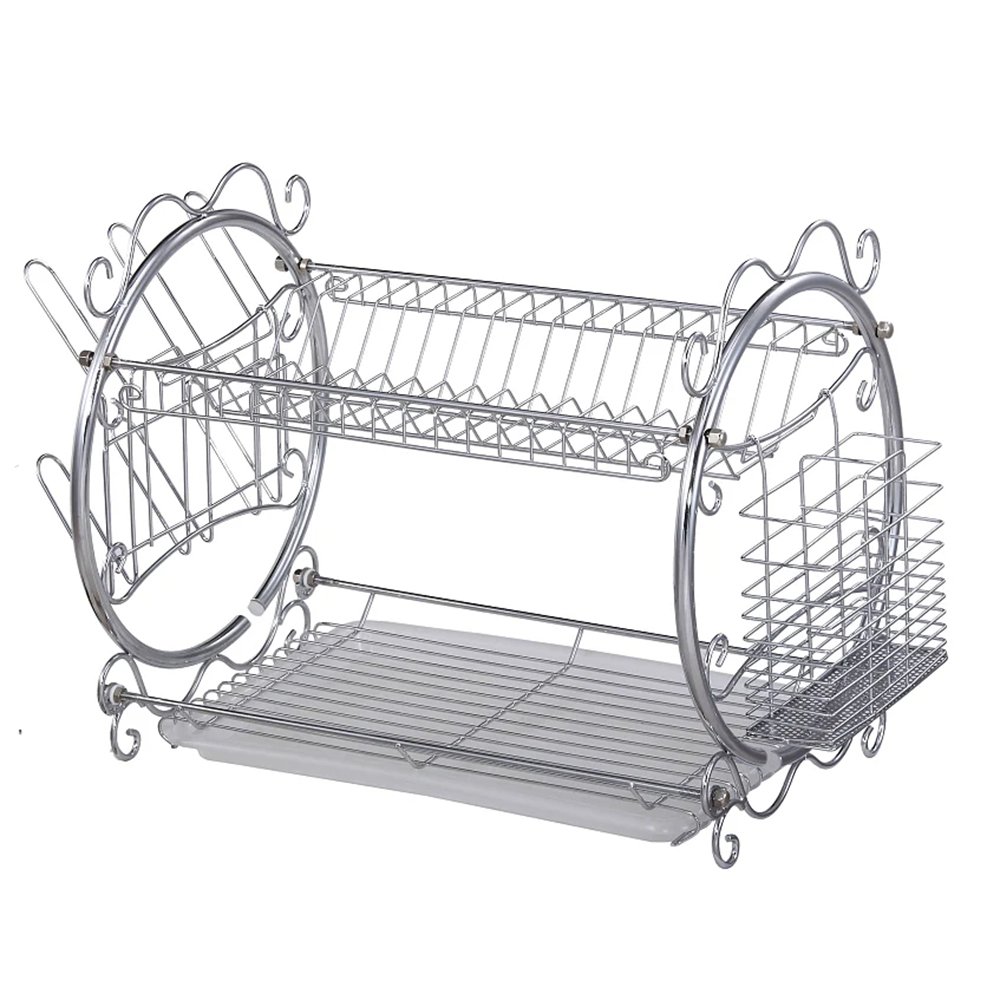This dish rack offers a versatile and efficient solution for drying your dishes. With its 2-tier design, it provides ample space for organizing plates, bowls, and utensils. Additionally, it features a cup drainer and a strainer, enhancing its functionality for various kitchen tasks. The included glass holder and cutlery holder further optimize space utilization, while the drainer tray effectively prevents excess water from accumulating, keeping your countertop clean and dry. Say goodbye to cluttered countertops and hello to organized dish drying with this convenient and practical dish rack.