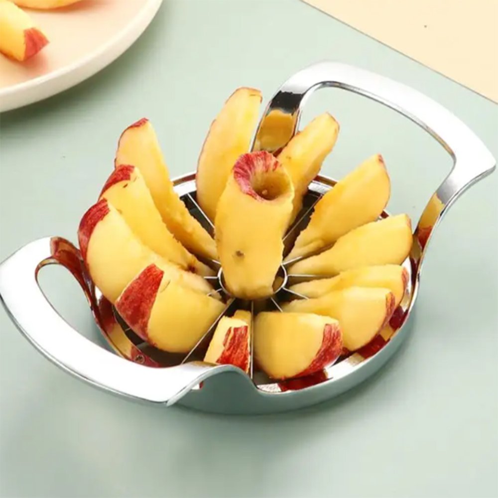 -Save your time and efforts without slicing apples so much time. Just aim at the core, push down the slicer to core through it, slightly twist and get rid of the core. Then you get 12 even apple slices right away.