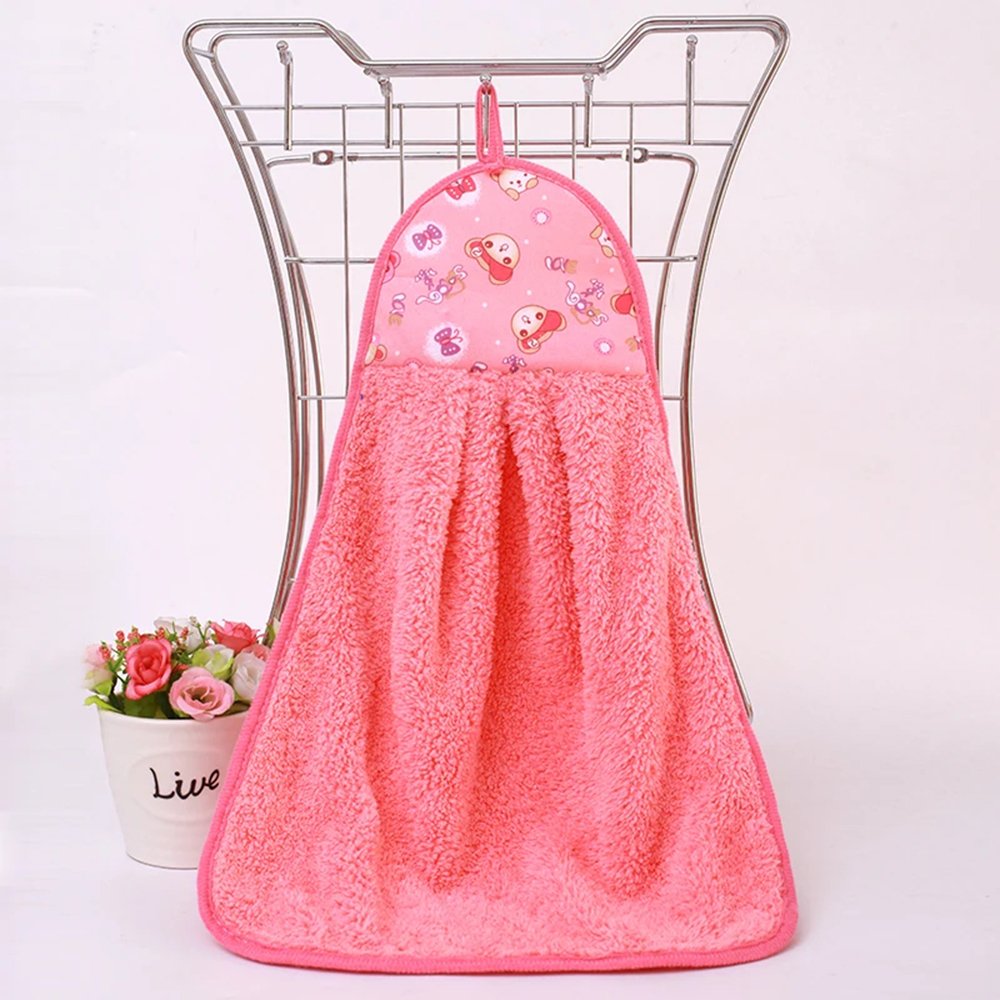 The baby hand towel features a hook rope and boasts a charming design that looks beautiful when folded. It conveniently hangs next to the sink for easy access.
