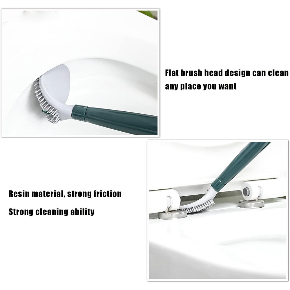 The flat brush head is designed to better clean all corners of the toilet bowl by bending the brush head to different angles, which can easily remove debris without producing fine scratches. It has a rounded shape to 360° clean every corner of the toilet, even reaches spots underneath the rim to scrub stains for a sparkling bathroom.