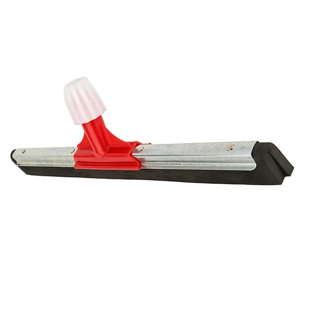 This squeegee is a cleaning tool consisting of a flat, flexible rubber blade designed to remove liquids from smooth surfaces such as windows, shower doors, and floors.