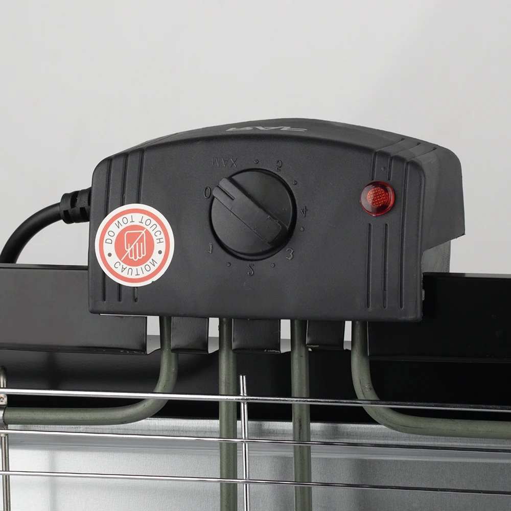 The RAF 5301 Electric Barbecue Grill features a stainless steel heating tube and fire for rapid, high-temperature heating, facilitated by a high-quality rotating motor ensuring uniform cooking. Its smoke-free design and vertical layout promote healthier grilling while a 0-30 minute timer streamlines cooking, complemented by a 360-degree rotation for even heat distribution. Additionally, metal oil cups efficiently collect grease for easy cleaning, enhancing durability and hygiene.