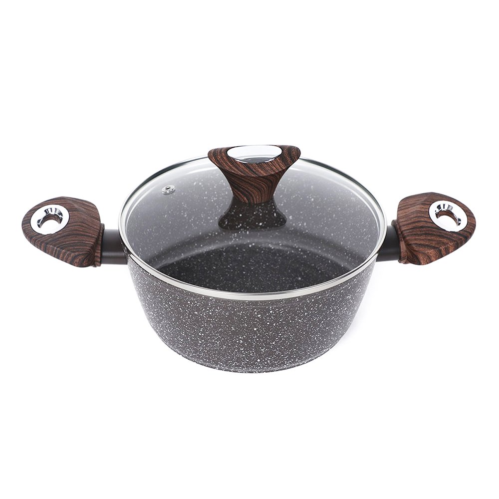 Ergonomic handles ensure a comfortable and secure grip, while glass lids make monitoring cooking easy.