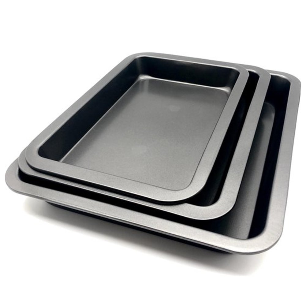 Set of three Baking Trays: The non-stick deep baking tray is perfect for baking brownies and cakes, as well as roasting vegetables, thanks to its durable construction.