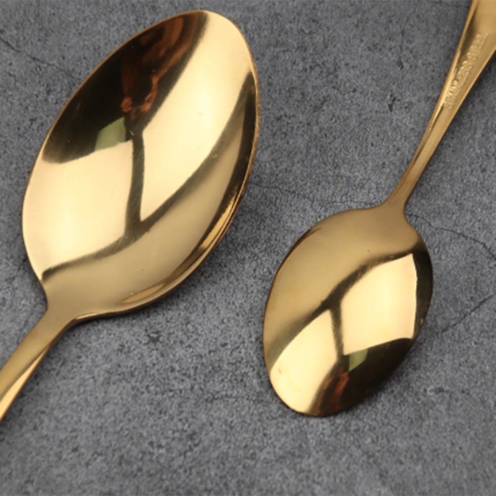 -This gold eating set is made of premium stainless steel material and uses advanced technology to achieve a matte finish and smooth surface. They will not corrode, bend or tarnish with proper care. Rustproof with ergonomic handles, these durable cutlery is designed for extended use. They are easily used in the kitchen, restaurant and are dishwasher safe.