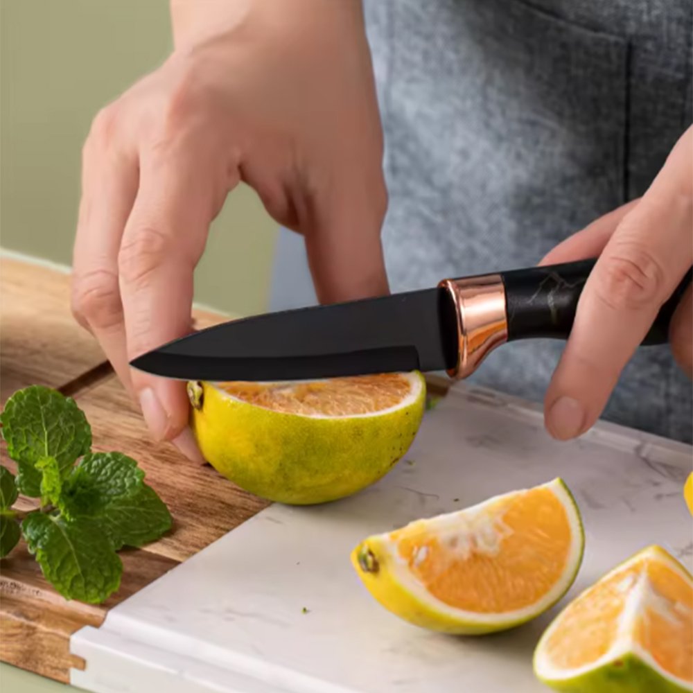 -The peeling knife features a sharp edge that curves upward, allowing for precise peeling of fruits and vegetables while minimizing waste. The compact size and precise blade make it ideal for intricate tasks such as removing the skin or outer layers of produce with ease and accuracy. Peeling knives are commonly used in culinary settings for tasks such as peeling apples, potatoes, and other fruits and vegetables.
