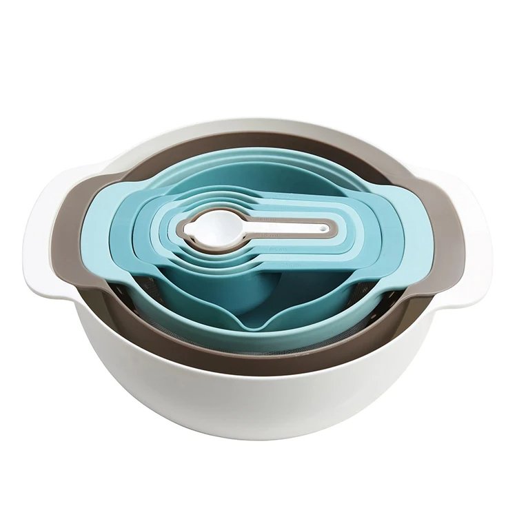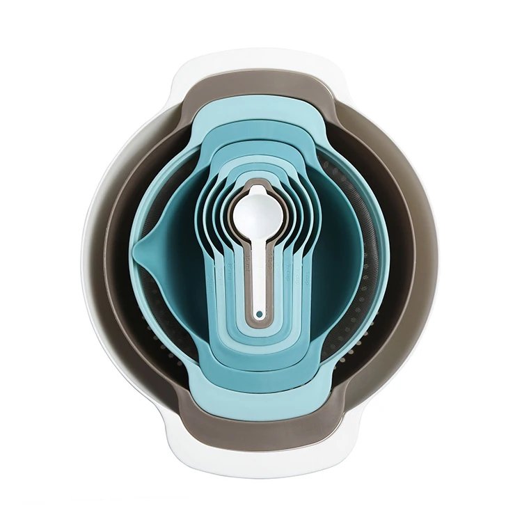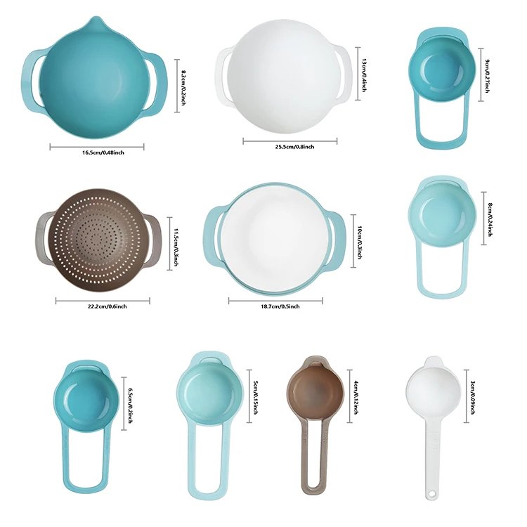 This set includes essential tools such as a large mixing bowl, a practical colander, and a versatile sieve with a net. Additionally, it features a small mixing bowl with measurements for precise ingredient preparation. To ensure accurate measurements, we've included a set of 6 measuring cups, ranging from 1 cup to 1/2 cup, catering to all your cooking and baking needs. Elevate your kitchen experience with this complete set, crafted for convenience, precision, and efficiency.