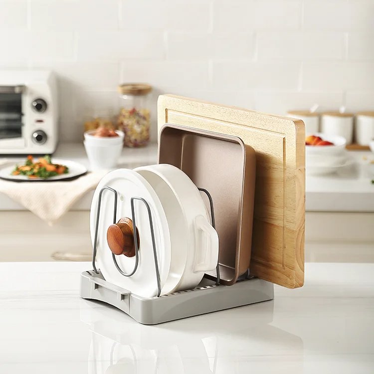 With four adjustable brackets, this organizer can accommodate pots and pans of various sizes, allowing you to customize the storage layout to suit your needs. The innovative buckle design on both sides of the shelf enables seamless combination, ensuring a snug fit within your cabinet space. Say goodbye to cluttered cabinets and wasted space with our Cookware Organizer, providing a convenient and organized solution for storing your cookware with ease.