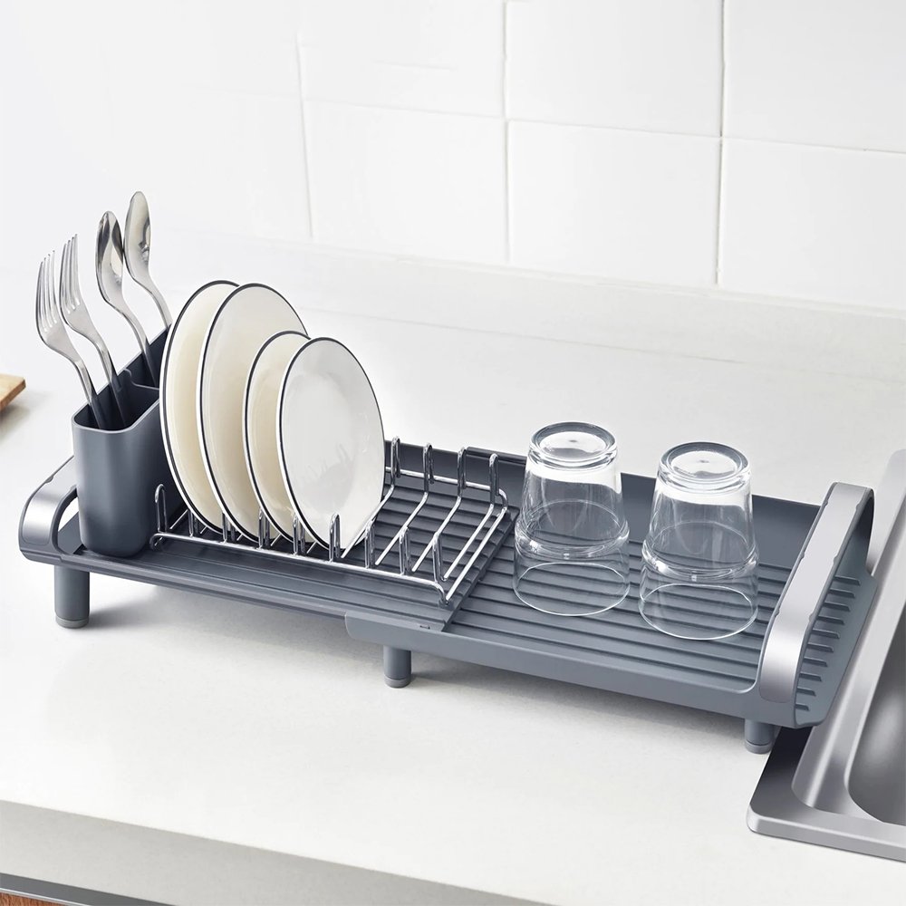 This dish rack is intelligently designed to maximize your countertop space.