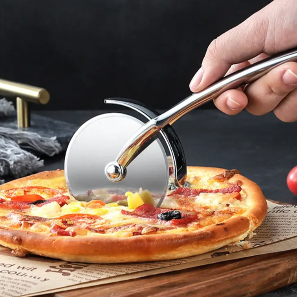 -Super Sharp Blades: Mirror polished finish, large diameter cut-off wheels are often suitable for fast processing of pizzas of various thicknesses, and sharp steel blades keep pizza toppings intact and rust-proof.