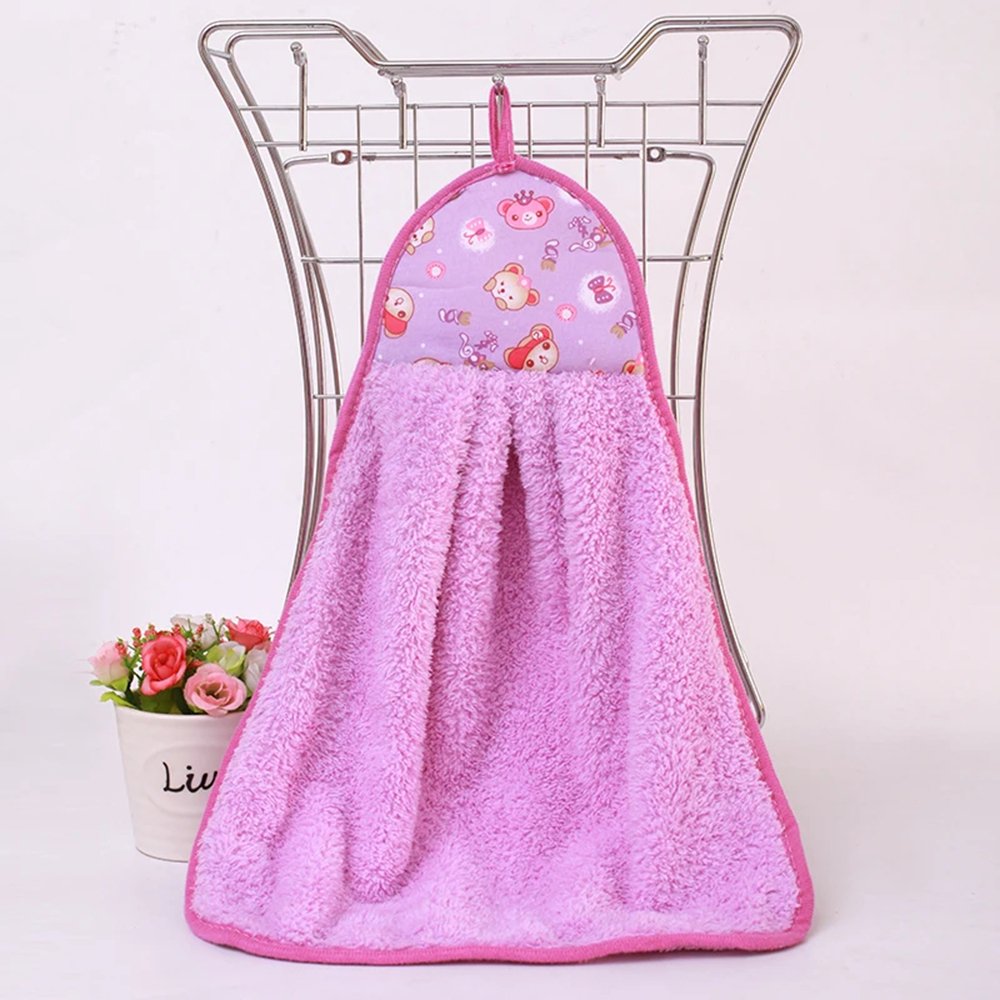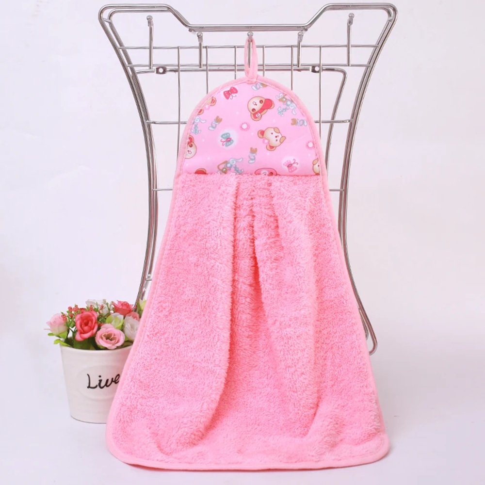 The baby hand towel features a hook rope and boasts a charming design that looks beautiful when folded. It conveniently hangs next to the sink for easy access.