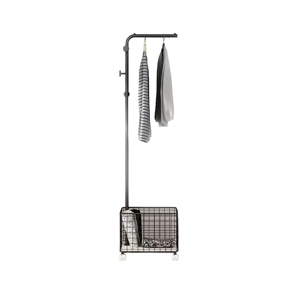 The metal clothes rack with a storage basket, perfect for coats, hats, scarves, and clothes, serves as a practical addition to any hallway or home office, offering convenient organization and space-saving solutions.