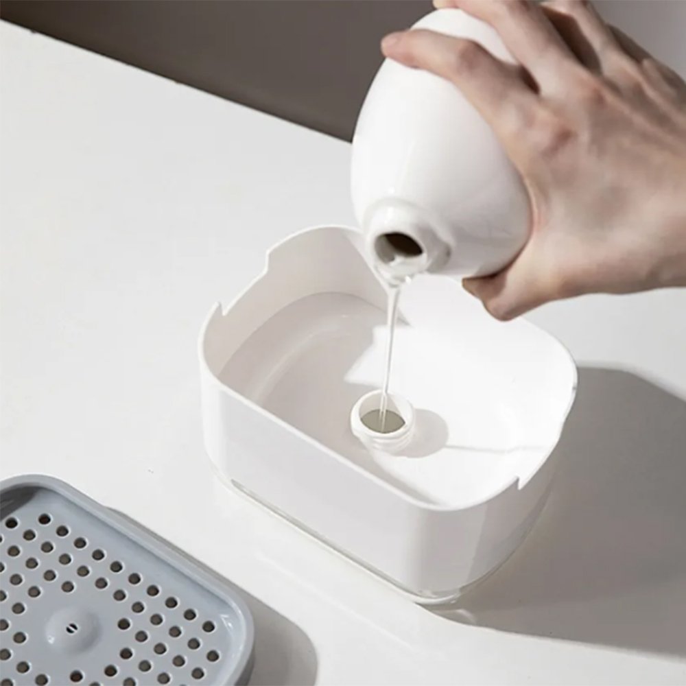 - Crafted from high-quality materials, our sponge soap dispenser offers convenience and efficiency in dishwashing.