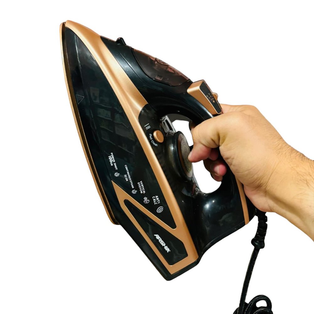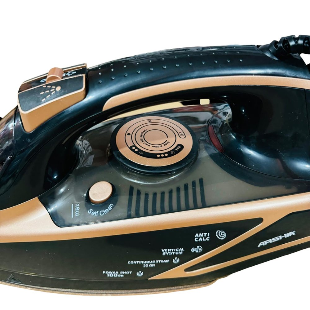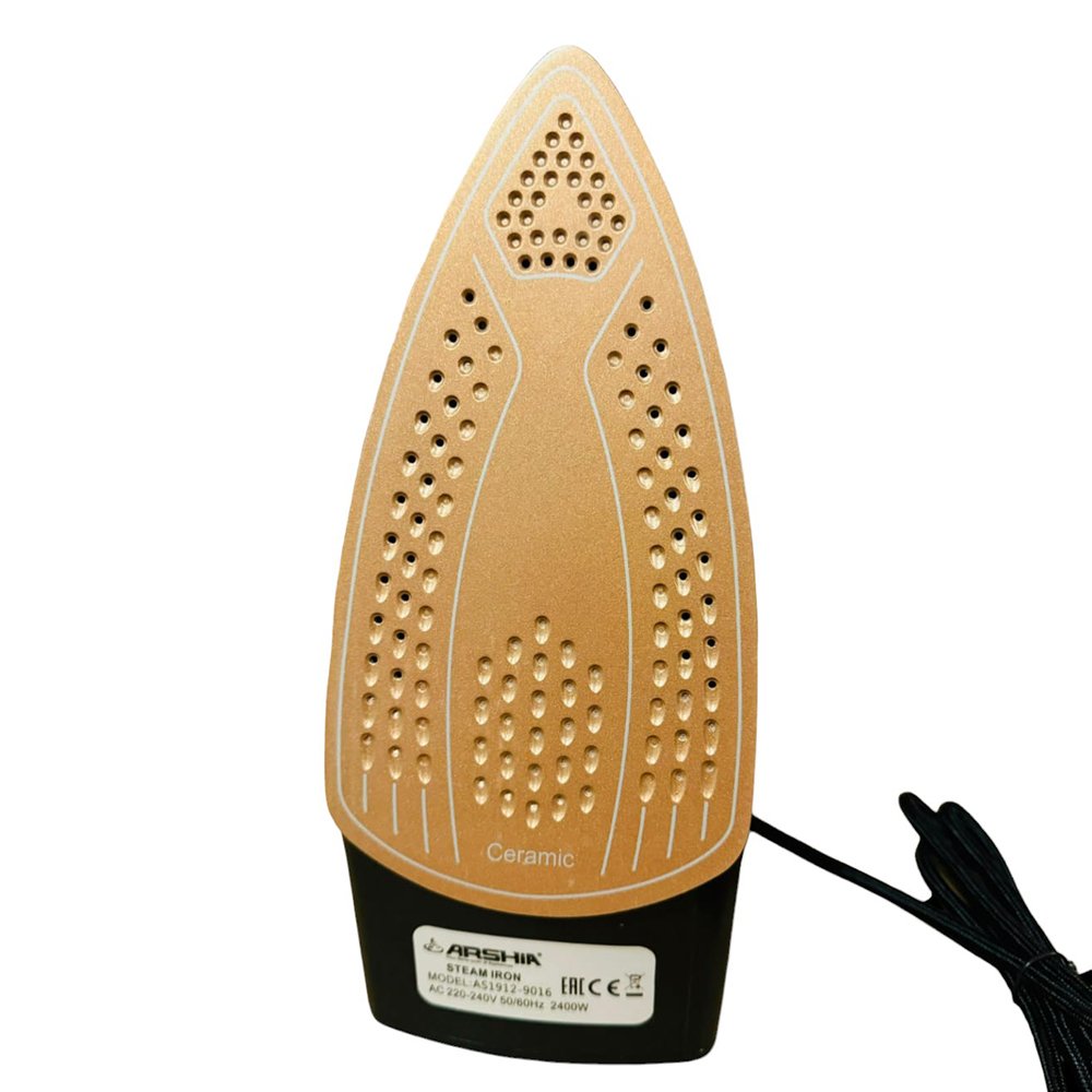 Equipped with a ceramic soleplate, it ensures smooth gliding over fabrics, while the spray, steam, burst of steam, vertical steam, and self-clean functions offer flexibility for different ironing needs. With variable steam control and adjustable temperature control, users can tailor the iron's settings to suit various fabric types and preferences. The 360-degree swivel cord guard with indicator light enhances maneuverability and safety during use. With a water tank capacity of 400ml, it allows for extended ironing sessions without frequent refills. The continuous steam rate of 25g/minute, steam burst of 0.6g/time, and spray volume of 0.6g/time ensure efficient wrinkle removal and crisp results. Operating at AC220-240V 50/60Hz with a powerful 2400W, this electric steam iron delivers quick and effective ironing performance, making it an essential tool for any household.