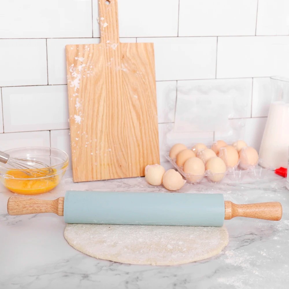 The stainless steel rolling pin with a wooden handle is ideal for effortlessly rolling out pizza, cookies, and bread dough. Its lightweight design, combined with an ergonomic hardwood handle, offers a comfortable grip and excellent hand feel. Equipped with solid stainless steel bearings, it ensures smooth rotation under any pressure. Easy to clean with non-stick materials, it's dishwasher safe and suitable for various baking tasks, making it a versatile kitchen essential.