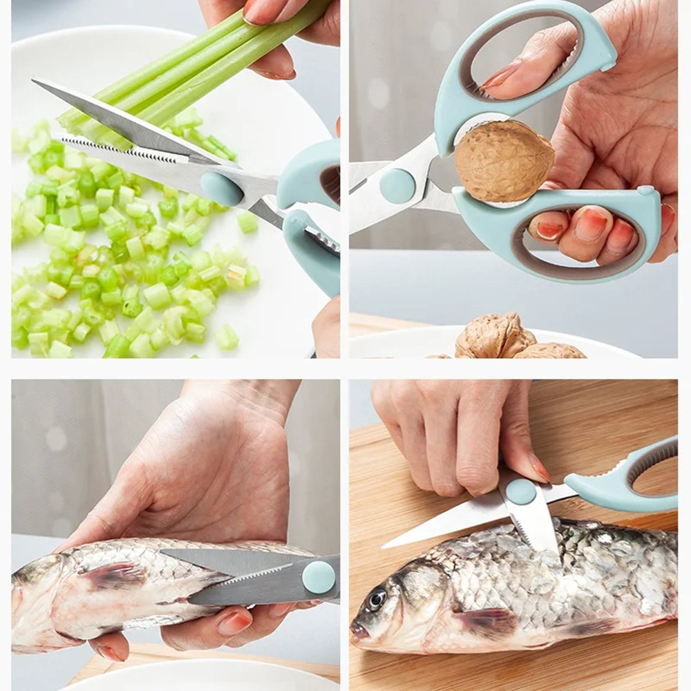 Ultra-sharp kitchen scissors excel in all culinary tasks, effortlessly cutting meat, vegetables, fish, and herbs with precision and ease. Their ergonomic design and durable blades make them essential for any kitchen, ensuring efficient preparation of ingredients for a wide range of recipes.