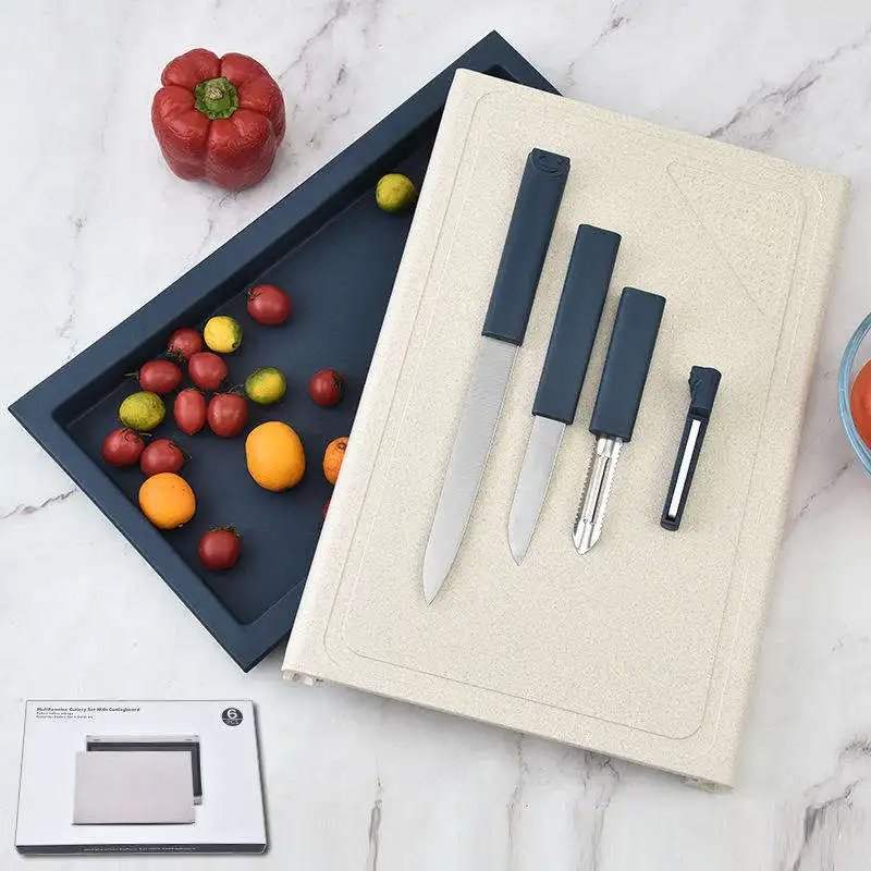 With two knives included, you've got all your slicing needs covered. The larger knife is perfect for those big, juicy fruits, while the smaller one is great for precision cuts on smaller fruits or tougher skins. The cutting board itself provides a sturdy surface for all your chopping and slicing tasks, and its compact size makes it easy to handle and store. Plus, the non-porous surface means it's super easy to clean. Whether you're whipping up a fruit salad, prepping a snack, or just need to slice some fruit for breakfast, this cutting board and knife set has got you covered.